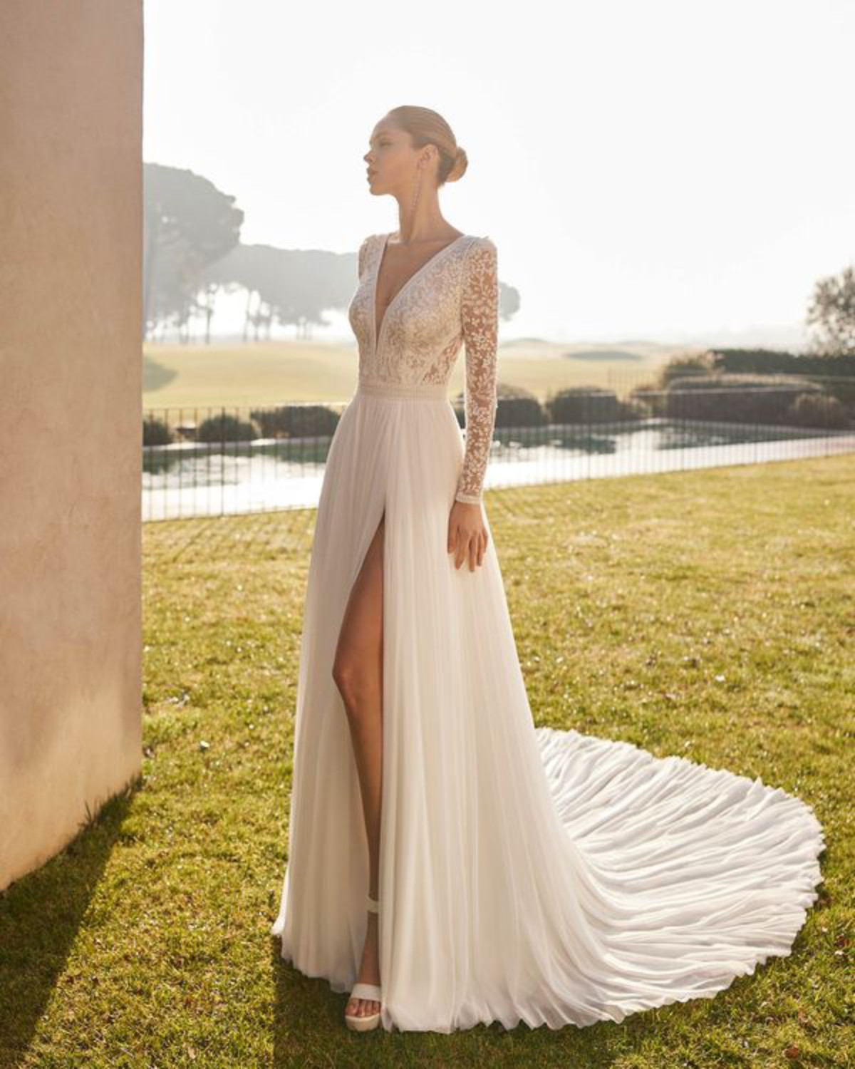 L’impegno per la purezza delle linee si riflette negli abiti da sposa senza fronzoli di Rosa Clará Boheme. Eleganza e delicatezza in ogni pezzo!