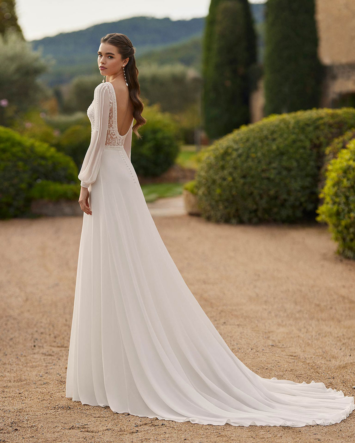 🌸 Abiti a sirena girocollo, con scollo all’americana, con scollo a V: tutti danno alle spose un look fresco e moderno, riflettendo il caratteristico romanticismo di Rosa Clará.