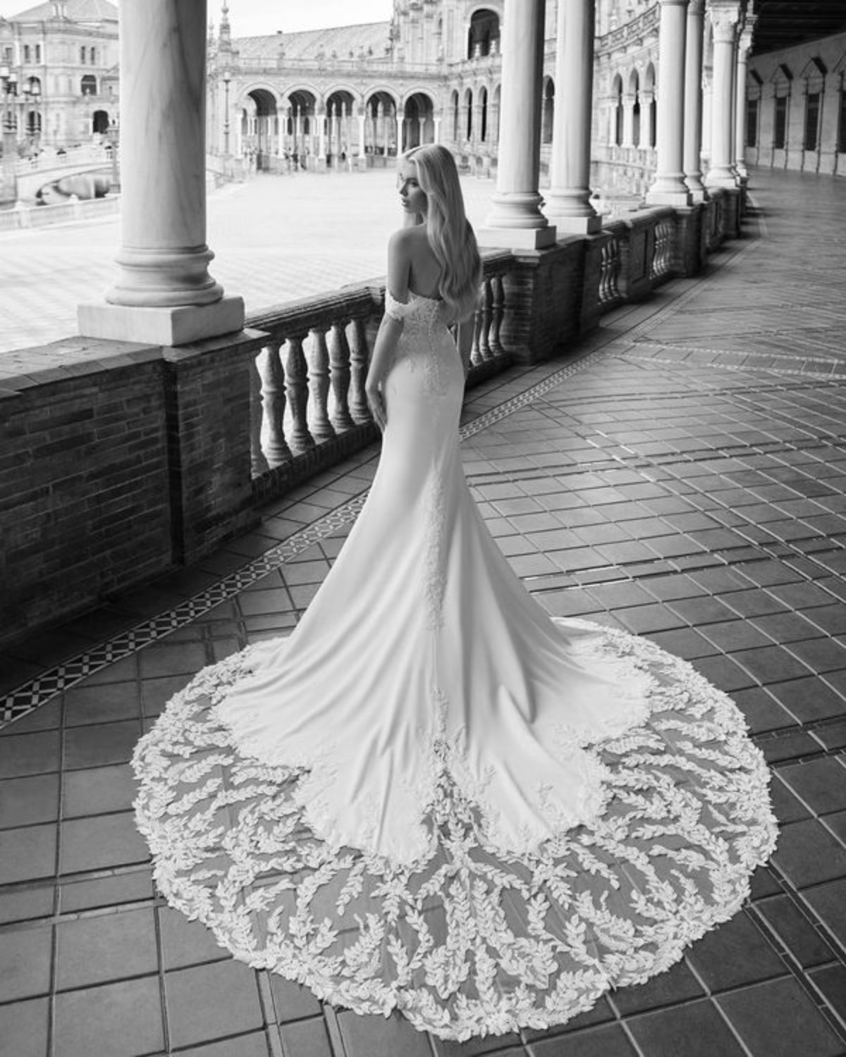 🌸 Abiti a sirena girocollo, con scollo all’americana, con scollo a V: tutti danno alle spose un look fresco e moderno, riflettendo il caratteristico romanticismo di Rosa Clará.