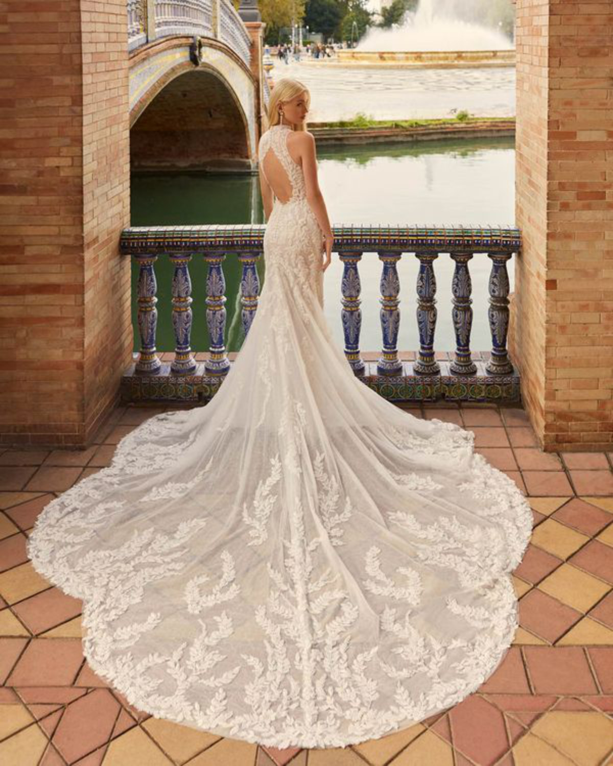 🌸 Abiti a sirena girocollo, con scollo all’americana, con scollo a V: tutti danno alle spose un look fresco e moderno, riflettendo il caratteristico romanticismo di Rosa Clará.
