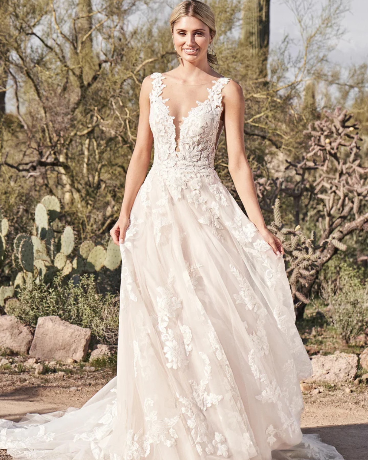 🌸 Abiti a sirena girocollo, con scollo all’americana, con scollo a V: tutti danno alle spose un look fresco e moderno, riflettendo il caratteristico romanticismo di Rosa Clará.