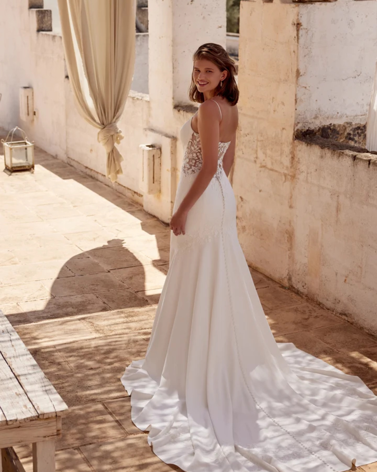 🌸 Abiti a sirena girocollo, con scollo all’americana, con scollo a V: tutti danno alle spose un look fresco e moderno, riflettendo il caratteristico romanticismo di Rosa Clará.