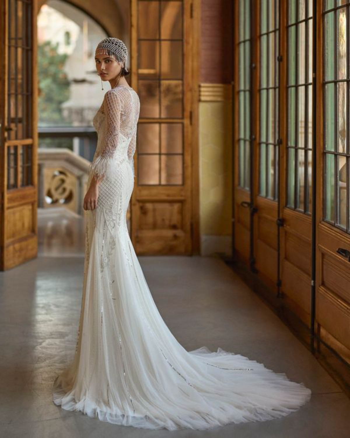 🌸 Abiti a sirena girocollo, con scollo all’americana, con scollo a V: tutti danno alle spose un look fresco e moderno, riflettendo il caratteristico romanticismo di Rosa Clará.