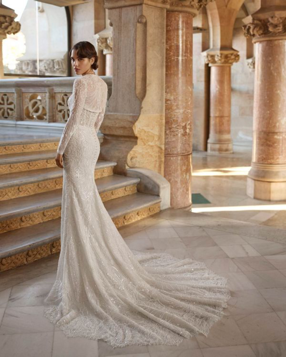 🌸 Abiti a sirena girocollo, con scollo all’americana, con scollo a V: tutti danno alle spose un look fresco e moderno, riflettendo il caratteristico romanticismo di Rosa Clará.