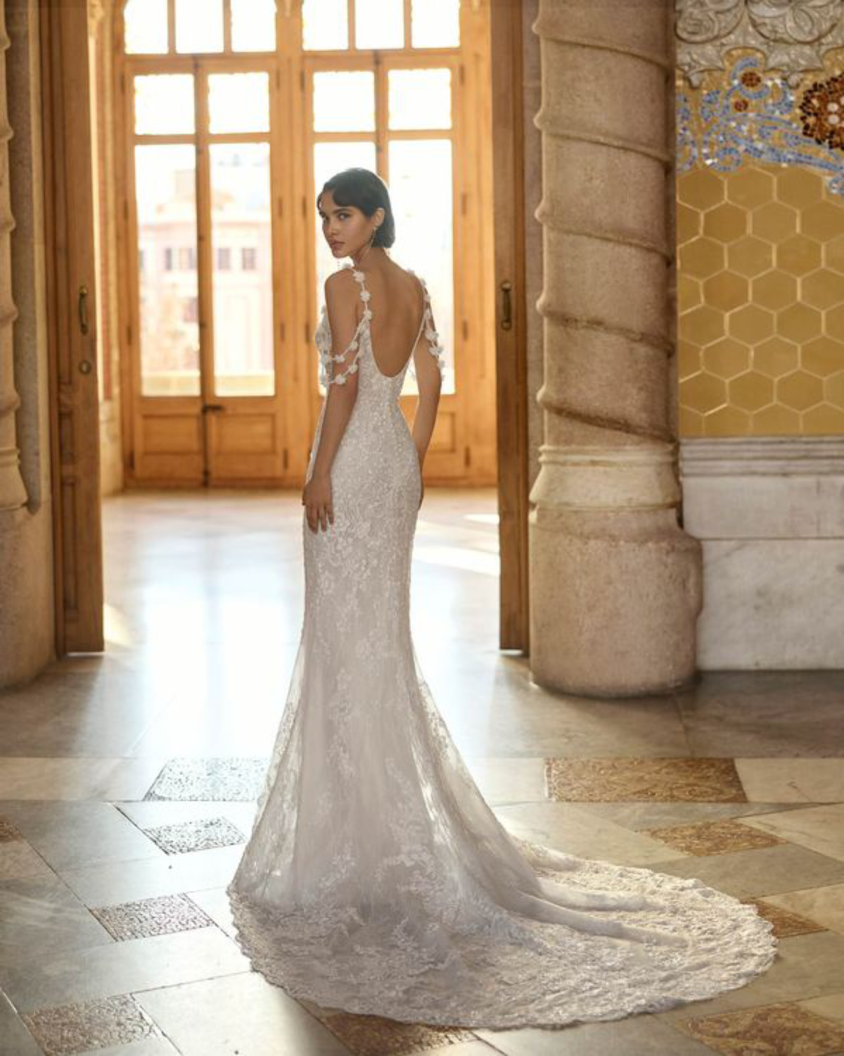 🌸 Abiti a sirena girocollo, con scollo all’americana, con scollo a V: tutti danno alle spose un look fresco e moderno, riflettendo il caratteristico romanticismo di Rosa Clará.