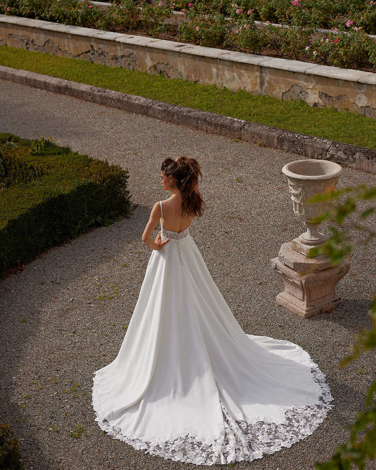 🌸 Abiti a sirena girocollo, con scollo all’americana, con scollo a V: tutti danno alle spose un look fresco e moderno, riflettendo il caratteristico romanticismo di Rosa Clará.