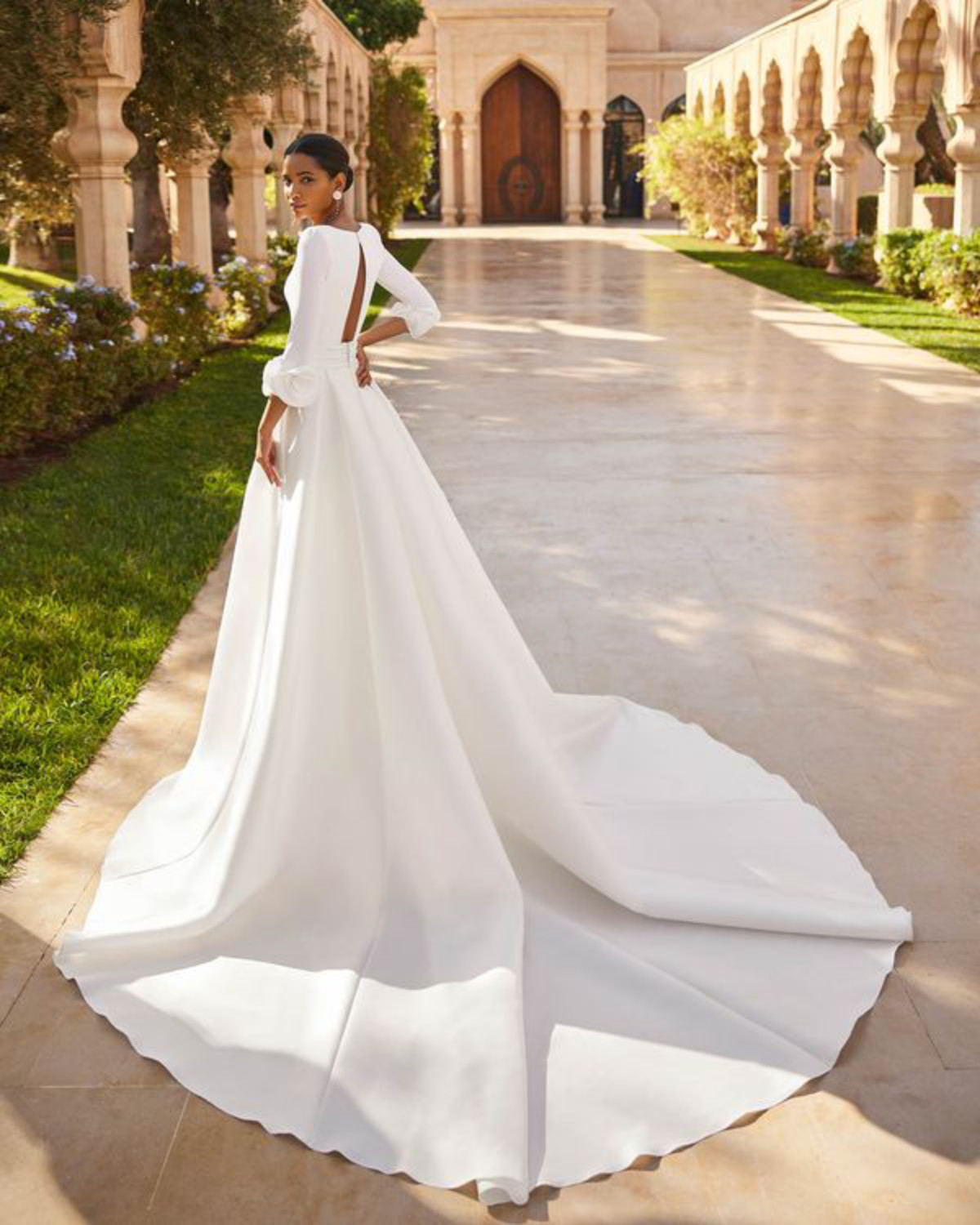 🌸 Abiti a sirena girocollo, con scollo all’americana, con scollo a V: tutti danno alle spose un look fresco e moderno, riflettendo il caratteristico romanticismo di Rosa Clará.