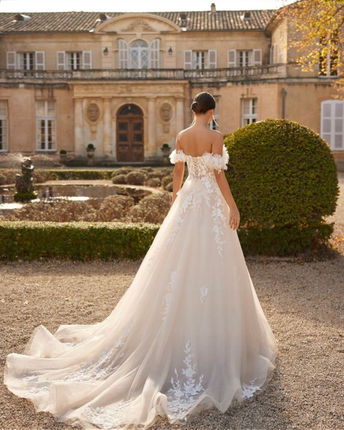 🌸 Abiti a sirena girocollo, con scollo all’americana, con scollo a V: tutti danno alle spose un look fresco e moderno, riflettendo il caratteristico romanticismo di Rosa Clará.